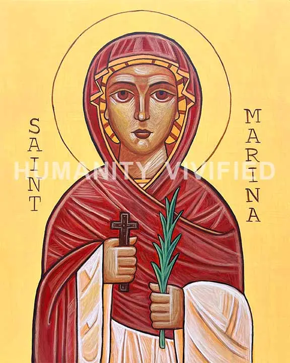 Order a Print of Coptic icon of St. Marina the Martyr – St. Marina, a revered virgin martyr, was a young woman from Antioch who was imprisoned and tortured for her faith during the Diocletianic persecutions. She is known for her unwavering courage and her victory over demonic forces. Tradition holds she was brutally martyred, and her steadfast witness is commemorated as a powerful example of faith conquering fear.